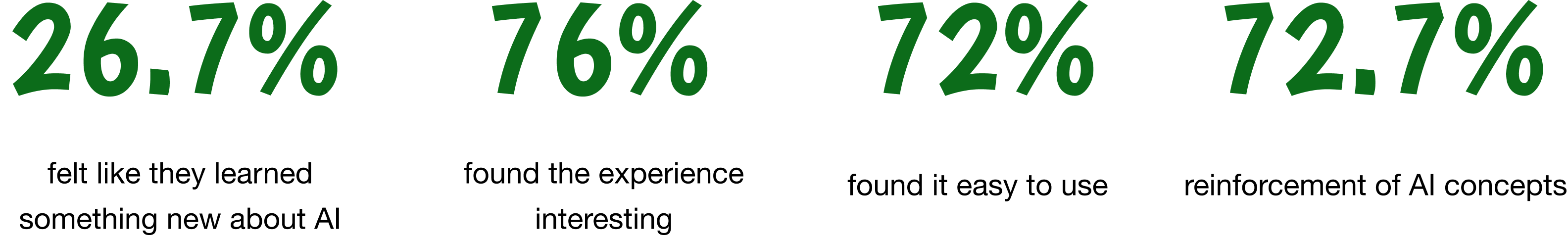 To my surprise, all young children under the age of 10 years old didn’t know what AI was. Although this eliminates the AI learning experience for that age group and younger, it could prompt at-home conversations between children and their parents about AI and in the meantime, the experience can act as a simple trail camera guessing game that could still be educational in its own right.